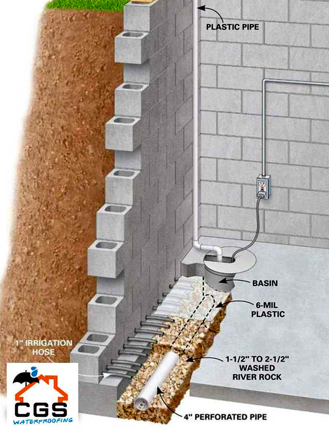 This is the external way to totally lock out water from your basement or foundation walls. It is the surefire way to relieve any amount of hydrostatic pressure pressing against your walls. One of the main reasons for foundation failures is due to constant water pressure.